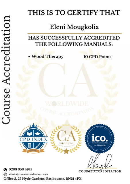 Τα σεμινάρια αισθητικής που θα παρακολουθήσετε είναι πιστοποιημένα από τον παγκοσμίως αναγνωρισμένο Φορέα Πιστοποίησης Course Accreditation, με έδρα το Λονδίνο. Η πιστοποίηση έχει γίνει με αύξοντα αριθμό μητρώου 100605, και το συγκεκριμένο πρόγραμμα παρέχει 10 CPD Points.